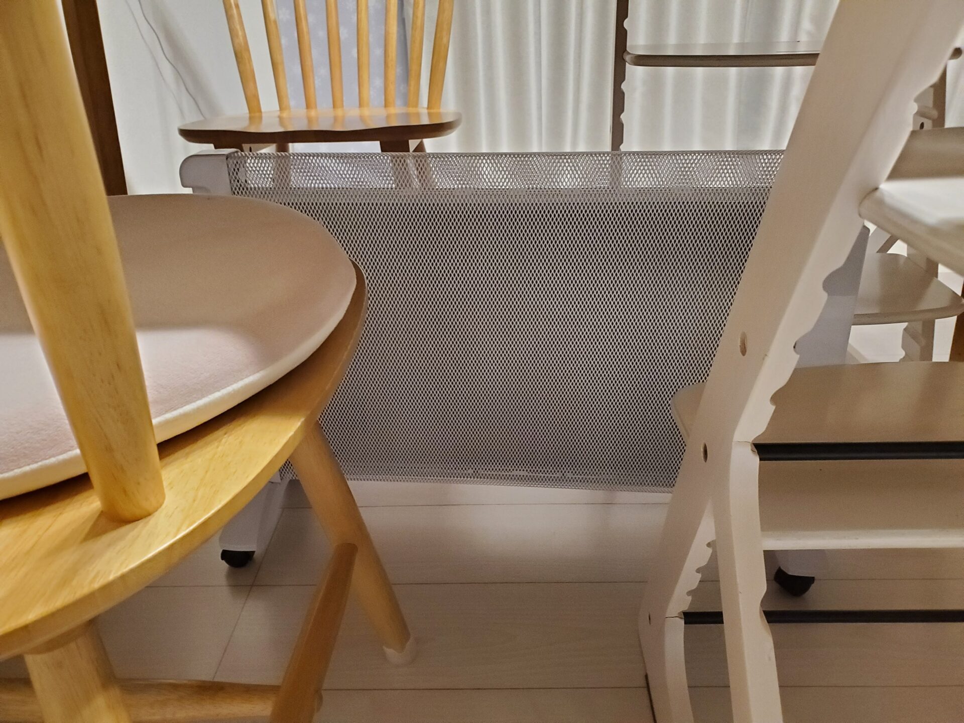 このパネルヒーターは少し大きめなので、ちょうど子供用の椅子からもちょっかいを出せる位置になります。